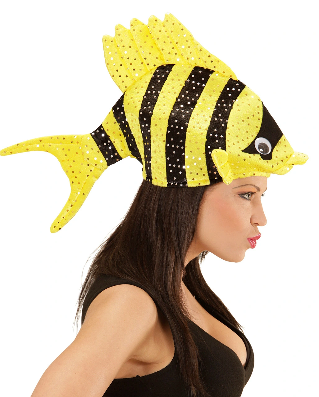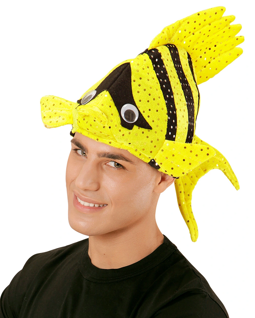 In der Lieferung kommt ein exotischer Fischhut Gelb in One Size Erwachsenen Größe. Der gelb-schwarze Fisch hat silberfarbige Pailletten die seine Schuppen darstellen, zwei lustige Kulleraugen und Flossen. Der Party-Hut mit Fisch ist aus hochwertig verarbeitetem, weichen Stoff. Trage ihn zu Beach-Events, Fasching, Halloween oder sonstigen Kostümfesten. Viele weitere Ideen für lustige Partyhüte findest du in unserem Onlineshop. Dort wartet auch schon der witzige Tintenfisch Mütze orange auf dich.