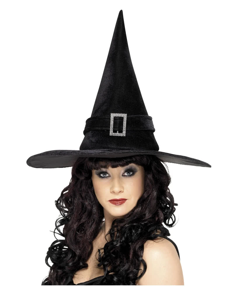 Was wäre eine klassische Hexe ohne ihren schwarzen Hexenhut? Mit diesem schick wirkenden Hexenhut aus weichem Samststoff besitzt du als Hexe einen ganz besonders schönen Hexenhut. Ein schwarzes Hutband und eine silberfarbene Brosche als Verzierung machen den Hexenhut zum Unikat.
