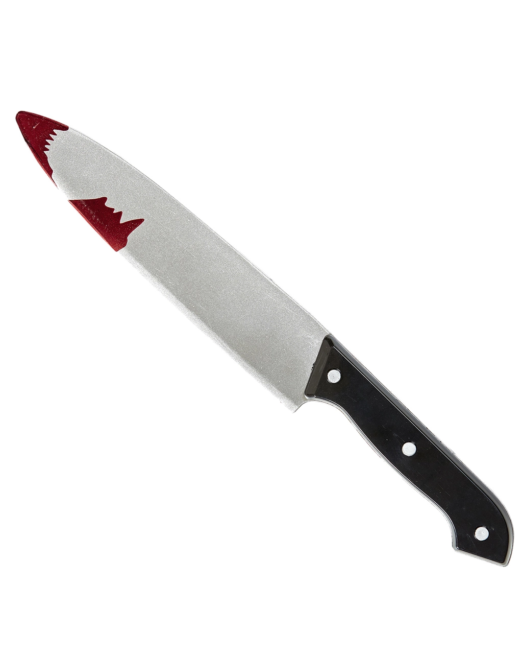 In den meisten Horrorfilmen spielen blutige Schlachtmesser eine große Rolle. Fast immer greifen die Opfer auf ihr Küchenmesser zurück. Unser unscharfes Metzgermesser mit Blutspritzer passt deswegen als Spielzeugwaffe genial zu allen Halloween Kostümen wie auch zu Michael Myers & Scream Opfer Verkleidungen als Verkleidungs-Zubehör.