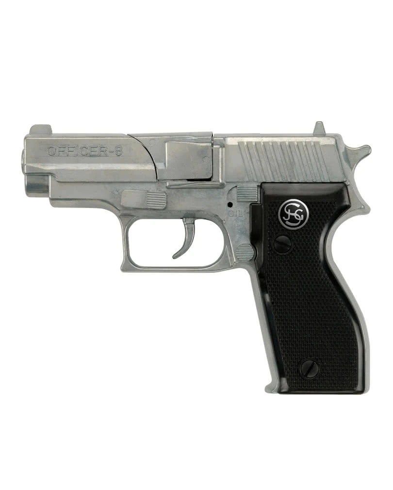 Verkleide dich doch als Polizist, Cop und Kommissar und jage mit der Officer 8 8-Schuss Pistole Verbrecher und Banditen. Die fantastisch aussehende Spielzeugwaffe sieht einer echten Polizei Pistole sehr ähnlich und so wird das Räuber und Gendarm Spiel im wahrsten Sinn zum Kinderspiel.