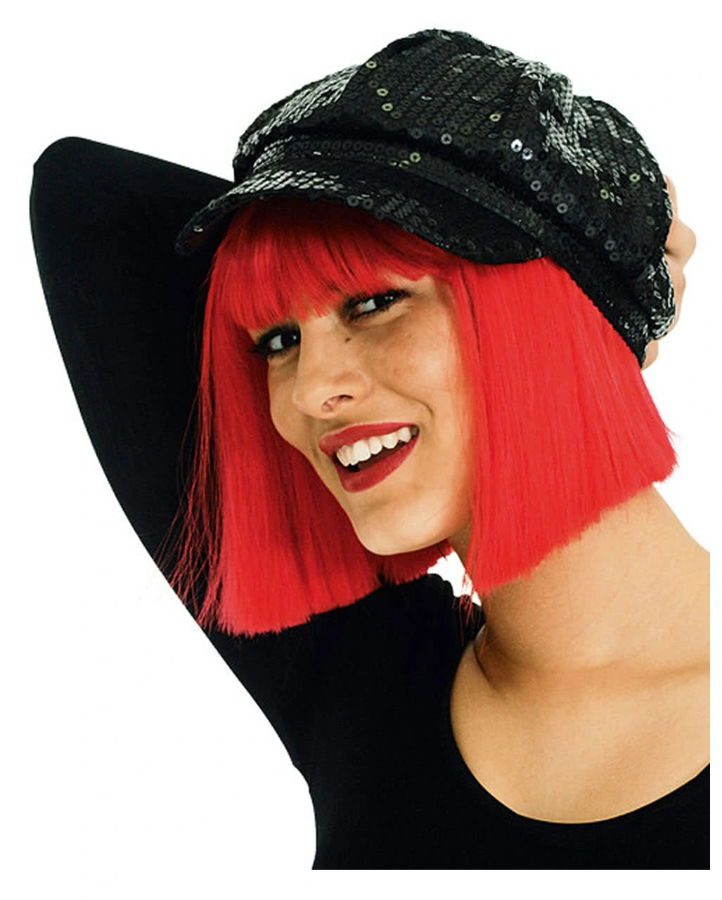 Lieferumfang: 1 x Pailletten Schirmkappe schwarz