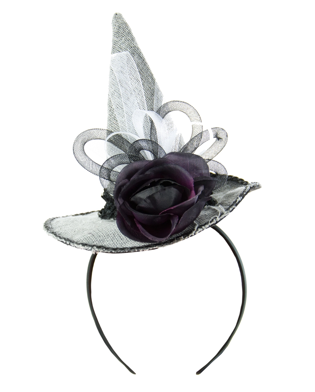 Hexen lieben Halloween und Karnevals Parties. Sie treiben natürlich auch auf Junggesellinnenabschieden ihr Unwesen und rocken die Tanzfläche auf Gothic Parties. Und oft besitzen sie auch eine romantische Seele, die sich in ihren zauberhaften Outfits widerspiegelt. Für genau solche Hexen wurde dieser Romantische Mini-Hexenhut kreiert. Er macht Dich schnell zum düster romantischen Blickfang, den die Aura des Mystischen umgibt und zeigt, dass auch finstere Märchenwesen von der großen Liebe träumen.