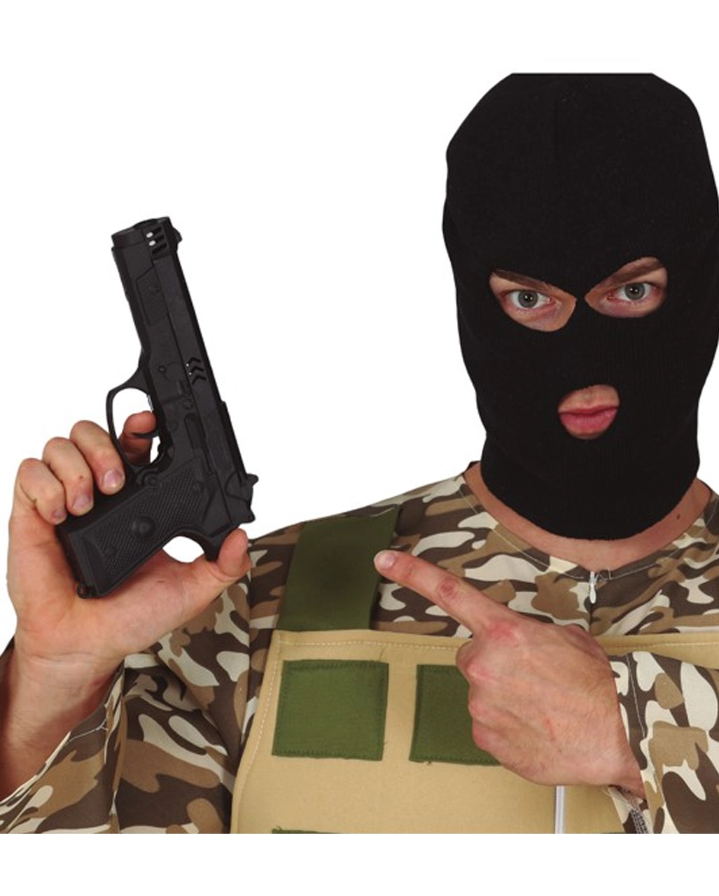 Ob als Polizist, Gangster oder auch als Bodyguard – unsere schwarze Spielzeugpistole als Attrappe eignet sich wunderbar als Kostüm Accessoire für Fasching und Mottopartys!