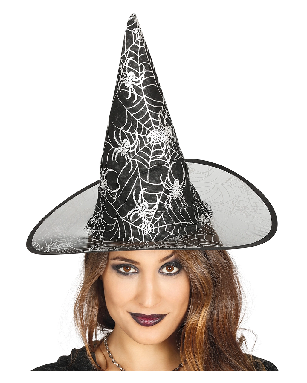 Schwarzer Hexenhut mit Spinnweben Motiv ist ein Kostüm-Accessoire für Hexen verkleidungen. Der Hexenhut für Halloween und Walpurgisnacht kommt mit weißen Spinnweben und Spinnen Motiven und ist in One Size Größe erhältlich. Trage zu Schwarzer Hexenhut mit Spinnweben Motiv ein hochwertiges Kostüm aus unserem Onlineshop. Wir empfehlen das Endora Kostüm M mit dem Spinnennetz Cape