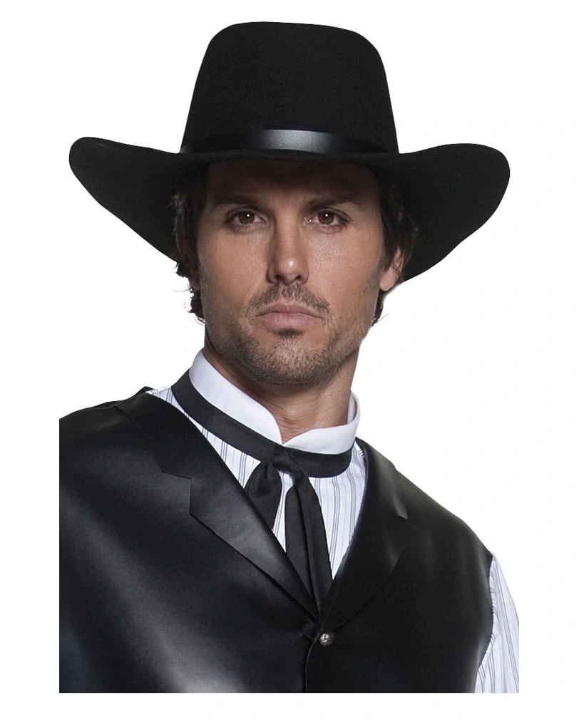 Schon Coltschwinger wie Wyatt Earp, Billy the Kid und die Dalton Brüder trugen diesen schwarzen Hut wie ein Markenzeichen. Mit dem Schwarzen Revolverheld Hut reihst du dich in ihre Riege ein und wirst zu einer Legende des Wilden Westens. Die Saloon Girls drehen sich da gerne zweimal zu dir um.