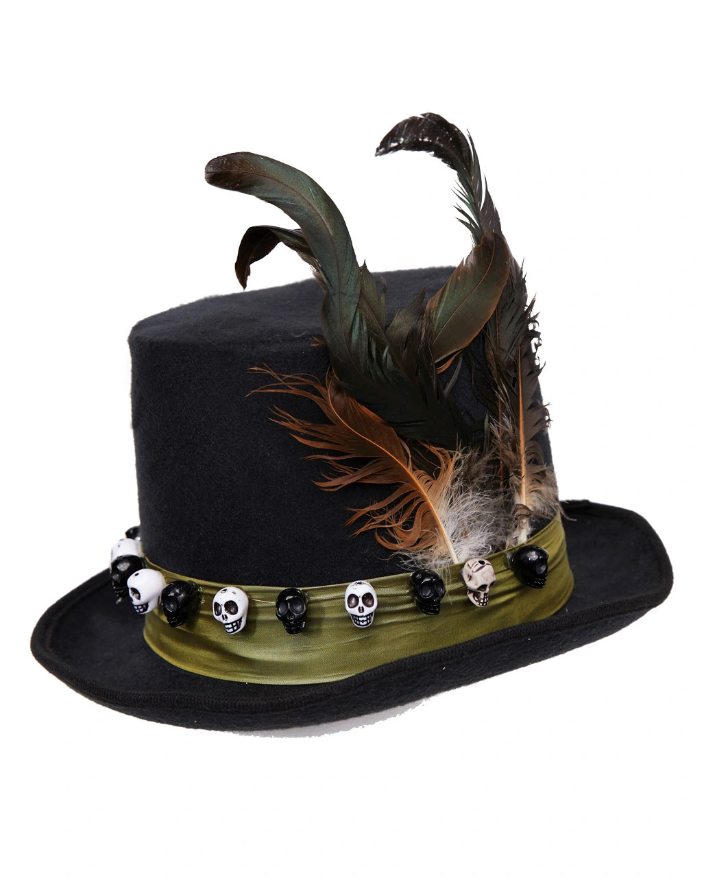 Unheimlicher Kostüm-Zylinder mit Totenköpfen und Federn