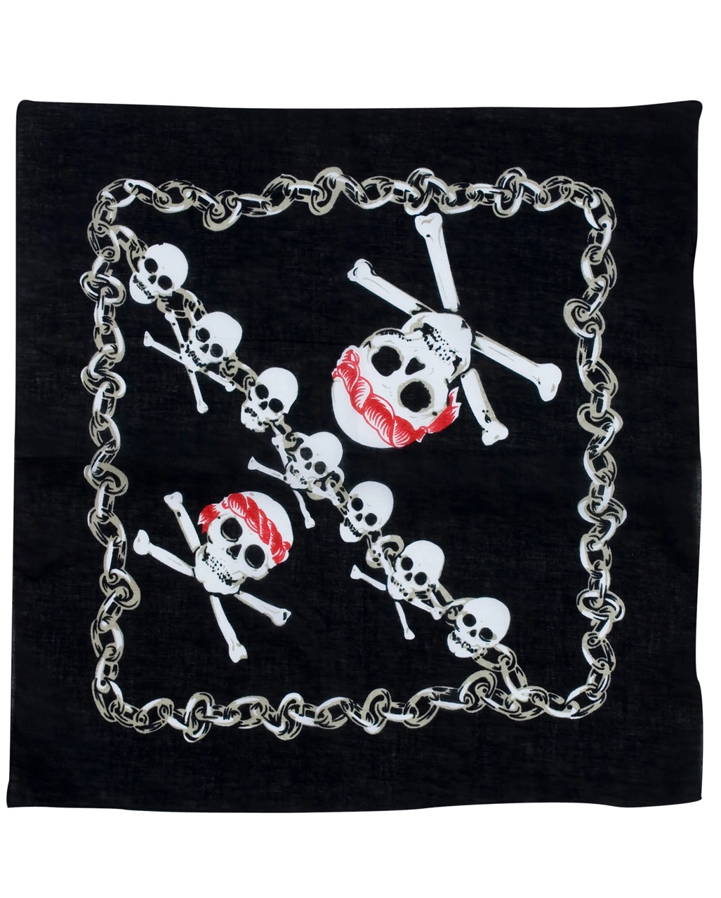 Schwarzes hübsches Kopf oder Einstecktuch mit Piratenskull-Motiv. Das Piraten-Bandana lässt sich prima für den verwegenen Piraten als Kopftuch binden oder als edles Einstecktuch für das Hemd oder die Hosentasche benutzen.